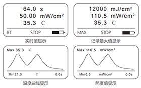 1,真正的智能UV能量計(jì),大液晶直接顯示溫度及強(qiáng)度曲線。