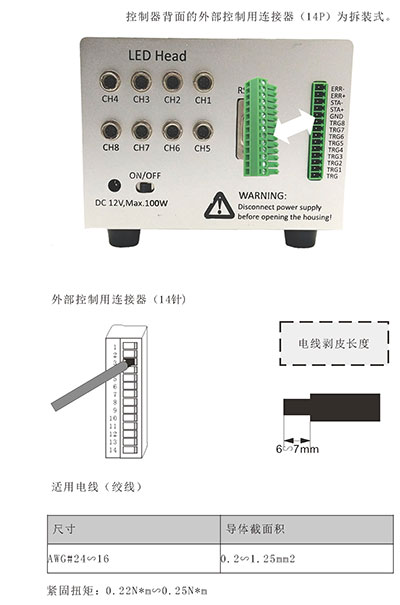 (2)CH1-CH8光頭連接接口 |